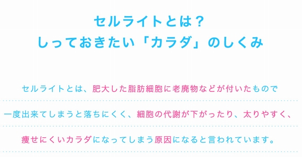 脂肪・セルライトが気になるなら痩身専門バイオエステBTB!自己ケアでは落ちないセルライトをプロが徹底的にケア♪ 通常価格21,000円の痩身エステコースが今なら≪500円≫!